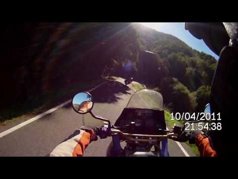 Retornamos por la pistilla a la carretera y ahora viene el descenso hacia el embarcadero en el río. Es una carretera espléndida para curvear pero es lástima perderse las perspectivas, es más recomendable bajar a paso de burra mirando aquí y allá el colorido de los bancales en las laderas o el contraste del río allá al fondo, una visita a estos lugares en el otoño debía de ser visita obligada a todo motero: